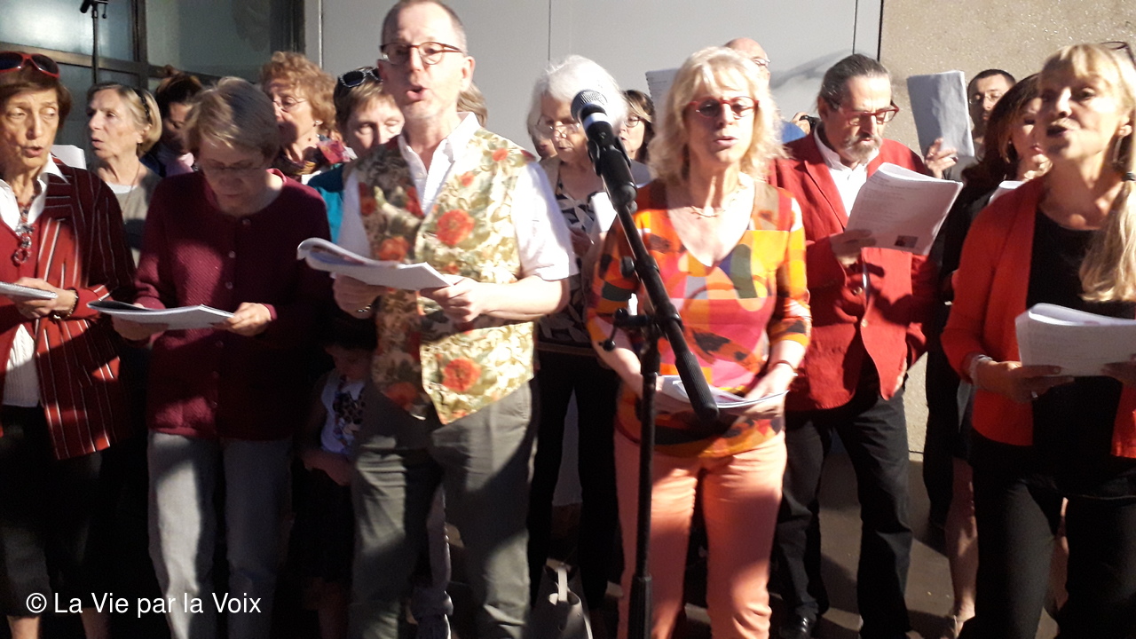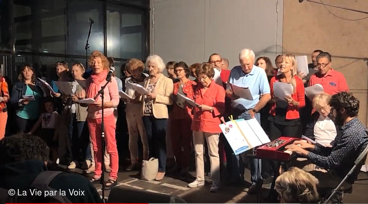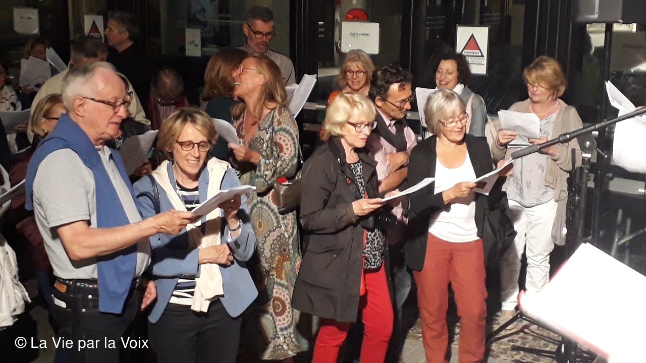 - D'abord le montage vidéo de Jean-Do, un ami d'Hélène D. La Vie par la Voix à la Fête de la musique 2019 (vidéo seulement accessible aux adhérents de l'Association)